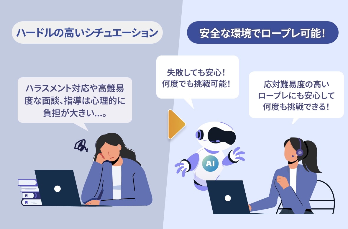 AI相手だから、ハラスメント対応や難易度の高い指導も「失敗を恐れず」挑戦可能。