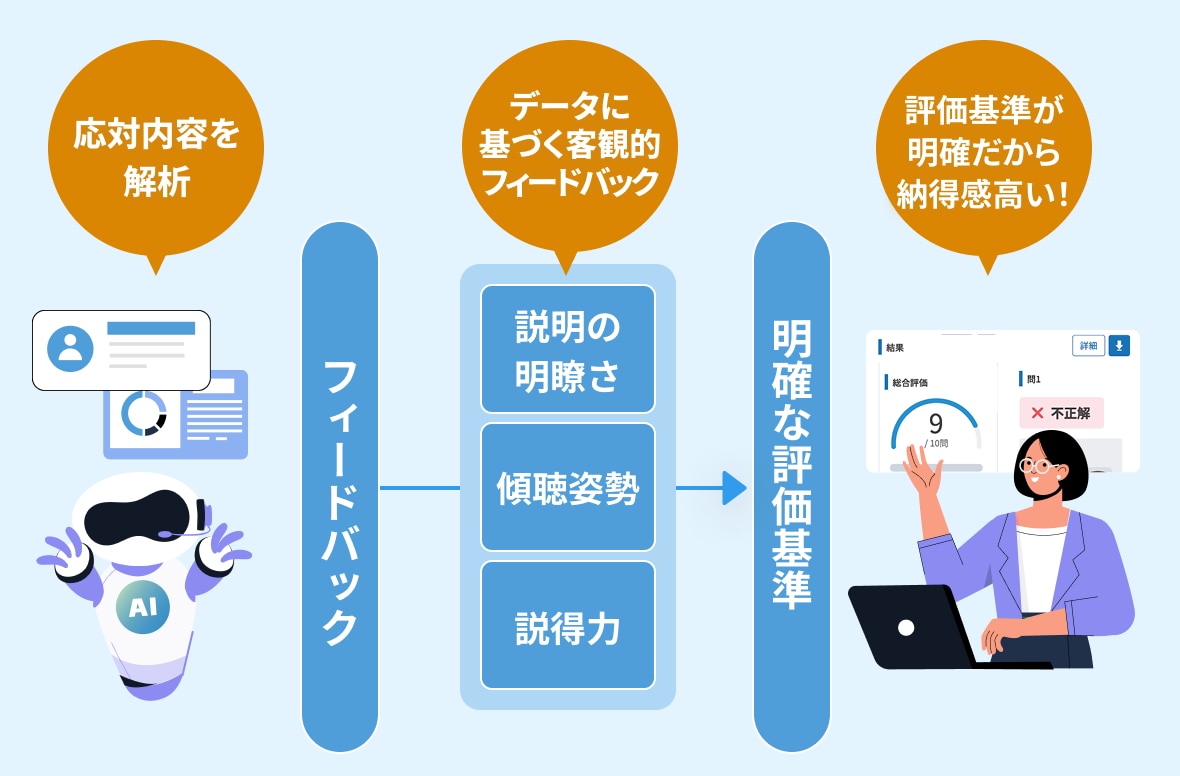 受講者は具体的な改善点を把握できるため、納得感を持って自律的にスキル向上が可能です。